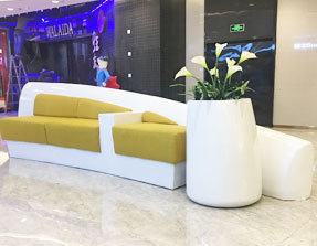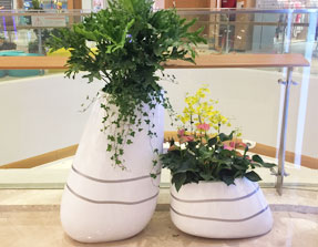 藝術(shù)花盆花器通過它的材料、造型、顏色來體現(xiàn)藝術(shù)設(shè)計理念,是商場美陳中的一個重要休閑景觀,凈化室內(nèi)空氣點綴裝飾商業(yè)環(huán)境